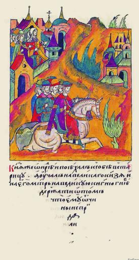 MAKE A MEME View Large Image Facial Chronicle - b.20, p. 031.gif  иниатю а Лицевого летописного свода XVI в Князь же Анд ей по- ехал к себе в Ста ицу а начал на великого князя и ...