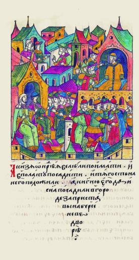 Keywords: Facial Chronicle - b.20, p. 067.gif иниатю а Лицевого летописного свода XVI в А князя Анд ея велели схватить и в палату поса- дить и оковы на него возложили; а княгиню его да и сына по- садили в го оде под ст ажу на Бе сеневе дво е» http //www runivers ru/bookreader/book481478/ page/52/mode/1up century 16 anonimus Facial Chronicle v 9 - Sinodalniy tom 1533-1542; 1553-1567 PD-Art Andrey Ivanovich of Staritsa in miniature Euphrosyne of Staritsk Vladimir Andreevich of Staritsa in miniature