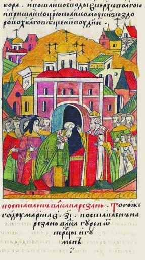 Keywords: Facial Chronicle - b.22, p. 42.gif Поставлен владыка на Рязань В том же году в ма те в 17 день поставлен на Рязань владыка Гу ий игумен Т оицкий http //www runivers ru/bookreader/book482205/ page/43/mode/1up century 16 anonimus Facial Chronicle v 9 - Sinodalniy tom 1533-1542; 1553-1567 Facial Chronicle - b 22 p 042 Files uploaded by Shakko from various sources PD-Art 1554 in Russia