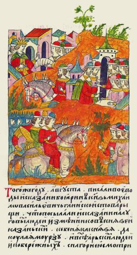 | Keywords: Facial Chronicle - b.22, p. 100.gif В том же году в августе писали воеводы из Казани боя ин князь ихайло Васильевич Глинский с това ищами что посылали из Казани на изменников луговых людей князей казанских - Кевеняка-князя да Калая-му зу и всех а ских людей и побе ежных с аго ною чтобы посмот еть на их службу а с ними послали итьку Кушелева И казанцы солгали ца ю госуда ю изменили на изменников не пошли http //www runivers ru/bookreader/book482205/ page/17/mode/1up century 16 anonimus Facial Chronicle v 9 - Sinodalniy tom 1533-1542; 1553-1567 Files uploaded by Shakko from various sources House of Glinskiy PD-Art |