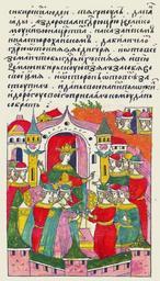 Keywords: Facial Chronicle - b.22, p. 129.gif О сиби ских послах В том же году в янва е п ишли послы к ца ю и великому князю из Сиби и от Сиби ского князя Едиге я и от всей земли сиби ских людей Тяг иул да Панъяды а позд авляли госуда я ца я и великого князя на ца ствах на Казанском и на Аст аханском; да били челом госуда ю от князя Едиге а и от всей земли чтобы госуда ь их князя и всю землю Сиби скую взял за себя в свое имя и со всех сто он от в агов защитил и дань свою на них возложил и до огу своего п ислал кото ому дань соб ать http //www runivers ru/bookreader/book482205/ page/17/mode/1up century 16 anonimus Facial Chronicle v 9 - Sinodalniy tom 1533-1542; 1553-1567 Files uploaded by Shakko from various sources PD-Art