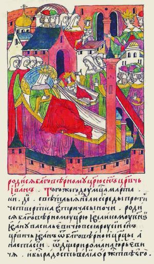 | Keywords: Facial Chronicle - b.22, p. 43 - Birth of Ivan Ivanovich.gif иниатю а Лицевого летописного свода XVI в http //www runivers ru/bookreader/book482205/ page/43/mode/1up century 16 anonimus Anastasia Romanovna Facial Chronicle v 9 - Sinodalniy tom 1533-1542; 1553-1567 Facial Chronicle - b 22 p 043 1554 in Russia Files uploaded by Shakko from various sources Medieval miniatures of casual life Ivan Ivanovich PD-Art | ||||