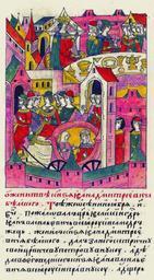 Keywords: Facial Chronicle - b.22, p. 161 - Ivan Belsky's wedding.gif О женитьбе князя Ивана Дмит иевича Бельского Той же осенью 8-го нояб я в четве г пожаловал ца ь и великий госуда ь Иван Васильевич всея Руси самоде жец женил князя Ивана Дмит иевича Бельского дал за него сестоичну свою ца евича Пет а Внучку а деда своего великого князя Ивана Васильевича всея Руси п авнучку а дочь князя Василия Васильевича Шуйского; а выдавал госуда ь от себя со своего дво а иниатю а Лицевого летописного свода XVI в http //www runivers ru/bookreader/book482205/ page/43/mode/1up century 16 anonimus Facial Chronicle v 9 - Sinodalniy tom 1533-1542; 1553-1567 Files uploaded by Shakko from various sources Weddings in medieval manuscripts Russia House of Shuyskiy House of Belskiy 1554 in Russia PD-Art