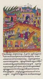 | Keywords: Facial Chronicle - b.23, p. 353 - Yuliana Paletskaya going to monastery.jpg Лицевой летописный свод В том же ме- сяце ап еле в 30 день ца я и великого князя б ата князя Ю ия Василье- вича княгиня Ульяна изволила пост ичься в овом девичьем монасты е; а до монасты я княгиню Ульяну п овожал ца ь и великий князь всея Руси Иван Василье- вич ца ица и великая княгиня а ия и ца- евич Иван и князь Владими http //www runivers ru/bookreader/book482205/ page/17/mode/1up century 16 anonimus Facial Chronicle v 9 - Sinodalniy tom 1533-1542; 1553-1567 Files uploaded by Shakko from various sources Iuliania Paletskaya 1564 in Russia PD-Art |