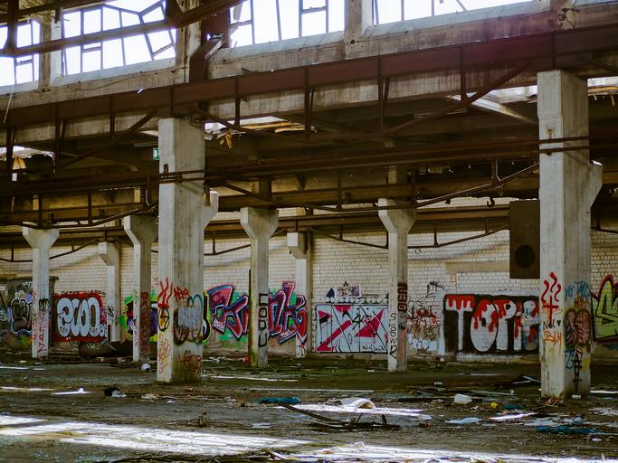 Keywords: factory lapsed ruin old factory decay leave hall old industry building facade factory building morbid old factory building break up industrial building destruction graffiti demolition old building ailing destroyed broken pforphoto lost places