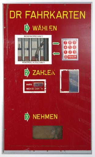 Keywords: Fahrkartenautomat Deutsche Reichsbahn 1980 001.JPG Fahrkartenautomat der Deutsche Reichsbahn von 1980 im DB Museum Nürnberg own Janericloebe 2010-05 Ticket machines in Germany Rail transport in the German Democratic Republic DB Museum Nürnberg |