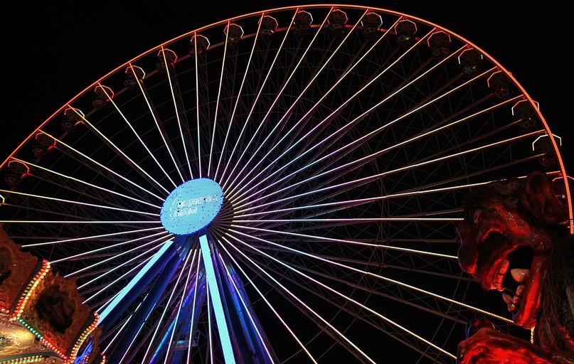 MAKE A MEME View Large Image fair hustle and bustle year market folk festival ferris wheel carnies fairground pleasure fun leisure evening entertainment abendstimmung night perspective dark colorful color carousel ride romantic joy gondolas romance light attraction ...