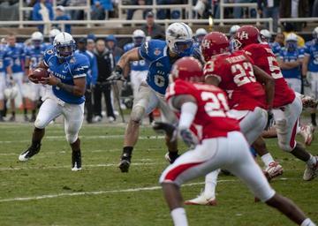Keywords: Falcons on offense at 2009 Armed Forces Bowl 1.JPG U S Air Force Academy quarterback Jared Tew turns the corner for a first down during the Falcons 47-20 defeat of the University of Houston Cougars at the seventh-annual Bell Helicopter Armed Forces Bowl at Amon G Carter Stadium in Fort Worth Texas Dec 31 2009 VIRIN 091231-N-0696M-053 http //www defenseimagery mil/imagery html guid 73c6b797b78b5f5b9e8ddcf4d442c233bfe2fb8a 2009-12-31 MC1 Chad J McNeeley USN PD-USGov-Military-Navy Files by User BrokenSphere 2009 Armed Forces Bowl |