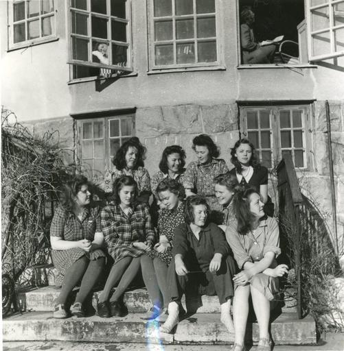 Keywords: familieforlegninger vårslipp 2012 vårslipp2012 nordmenn i sverige under krigen nordmennisverigeunderkrigen flyktningemottak amerikahjelpen rättvik people groupshot AMERIKA-HJELPEN TIL NORSKE FLYKTNINGER Av de 100,000 dollars som amerikanske borgere har gitt til beste for norske flyktninger i Sverige, har komiteen for Amerika-hjelpen anvendt et beløp til innkjøp av en vakker villa i Stocksund utenfor Stockholm, som hjem for unge piker. Huset inneholder store salonger, bibliotek, spisesal, hall og forsamlingssal og gir plass til innkvartering av 35 piker med betjening.Bildet viser en gruppe av de unge pikene på trappen ut mot haven.Stockholm 20.3.45 RA/PA-1209/Uc/72/3/S5641 AMERIKA-HJELPEN TIL NORSKE FLYKTNINGER Av de 100,000 dollars som amerikanske borgere har gitt til beste for norske flyktninger i Sverige, har komiteen for Amerika-hjelpen anvendt et beløp til innkjøp av en vakker villa i Stocksund utenfor Stockholm, som hjem for unge piker. Huset inneholder store salonger, bibliotek, spisesal, hall og forsamlingssal og gir plass til innkvartering av 35 piker med betjening.Bildet viser en gruppe av de unge pikene på trappen ut mot haven.Stockholm 20.3.45 RA/PA-1209/Uc/72/3/S5641 |