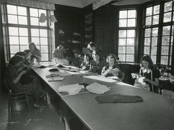 Keywords: familieforlegninger vårslipp 2012 vårslipp2012 nordmenn i sverige under krigen nordmennisverigeunderkrigen flyktningemottak amerikahjelpen rättvik blackandwhite black and white AMERIKA-HJELPEN TIL NORSKE FLYKTNINGER Av de 100,000 dollars som amerikanske borgere har gitt til beste for norske flyktninger i Sverige, har komiteen for Amerika-hjelpen anvendt et beløp til innkjøp av en vakker villa i Stocksund utenfor Stockholm, som hjem for unge piker. Huset inneholder store salonger, bibliotek, spisesal, hall og forsamlingssal og gir plass til innkvartering av 35 piker med betjening. Bildet viser de unge norske piker som deltagere ved et sykurs. Det holder til i ett av rummene i villaen og ledes av sakkyndige personer. Stockholm 20.3.45 RA/PA-1209/Uc/72/3/S 5650 AMERIKA-HJELPEN TIL NORSKE FLYKTNINGER Av de 100,000 dollars som amerikanske borgere har gitt til beste for norske flyktninger i Sverige, har komiteen for Amerika-hjelpen anvendt et beløp til innkjøp av en vakker villa i Stocksund utenfor Stockholm, som hjem for unge piker. Huset inneholder store salonger, bibliotek, spisesal, hall og forsamlingssal og gir plass til innkvartering av 35 piker med betjening. Bildet viser de unge norske piker som deltagere ved et sykurs. Det holder til i ett av rummene i villaen og ledes av sakkyndige personer. Stockholm 20.3.45 RA/PA-1209/Uc/72/3/S 5650 |