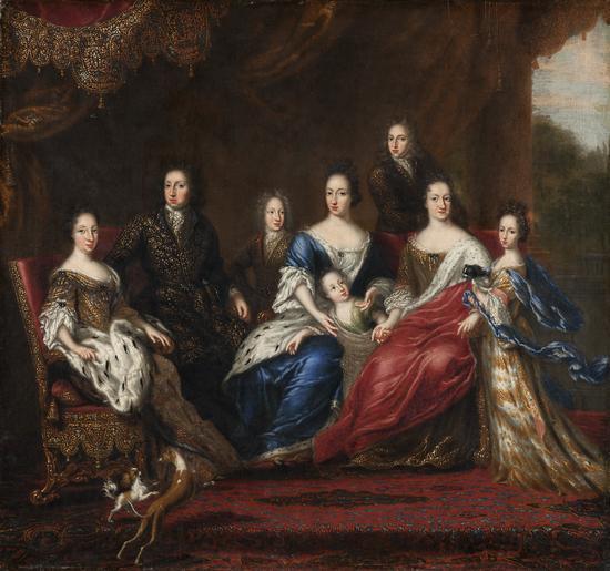 Keywords: Familjeporträtt, Karl XI, Ehrenstrahl, 1690-tal - Livrustkammaren - 89010.tif Fredrika Amalia av Holstein-Gottorp hertiginna Hedvig Eleonora av Sverige Karl XI av Sverige Karl XII av Sverige Ulrika Eleonora av Sverige Ulrika Eleonora d ä av Sverige drottning 1656- Köpenhamn Danmark plain text Oljemålning på duk rentoilerad vid tidigare konservering <br/><br/>Kungliga familjens åtta medlemmar avporträtterade sittande och stående på ett podium täckt med en rödmönstrad orientalisk matta Från v änkedrottning Hedvig Eleonora Karl XI Karl XII Ulrika Eleonora d ä Ulrika Eleonora d y Fredrik IV av Holstein Gottorp Fredrika Amalia av Holstein Gottorp och Hedvig Sofia Änkedrottningen sitter i en rödklädd länsstol rikt dekorerad med dyna Hennes klänning är i gult guld och grått hermelinsmantel Två hundar leker intill henne Herrarnas kläder i mörkare toner Ulrika Eleonora d ä s blå hermelinsmantel dottern Ulrika Eleonoras grön Fredrika Amalias guldbrun röd mantel Hedvig Sofias klänning guil och vit med blå sjal hon bär en hund i famnen <br/><br/>I bakgrunden röda draperier med bred lambrekängbård med kungens krönta monogram Till h landskapsutsikt <br/>På spännramens baksida två klistrade lappar med påskrift <br/> 19 Carl den 11te konge af Sverrig med sin Dronning og Börn paa Laerred af Kläcker Ehrenstrahl 24 T höi 27 T bred samt från Wijk <br/><br/>Två mindre klisterlappar på spännram och kronan st 337 04 438 938 <br/><br/>Guldram med akantusdekor Plats för inskriptionsplatta nertill Överst i mitten det krönta lilla riksvapnet tre kronor i rund sköld mot böjd skraffering bakom skölden korslagda svärd och spira original caption Familjeporträtt Karl XI Ehrenstrahl 1690-tal<br/> Nyckelord Karl XI Kungligheter Familj Barocken Målning Föremålsbild Stormaktstiden decade 1690 fir - oil on canvas size mm 640 size mm 790 med ram size mm 870 med ram size mm 680 LRK Gustaf A F W von Essen greve hovstallmästare Reinhold T G C G Rudbeck friherre hovmarskalk Kunglig barnkammare 1995 Katarina den stora Gustav III i Eremitaget 1999 från Wijk Gustaf A F W von Essen från Wijk Gustaf A F W von Essen place of origin original filename lm_dig3556 60892 inventory number LRK 24337 89010 PD Jens Mohr <gallery caption Different images of same object > File Grupporträtt av Karl XIs familj utförd av hovmålaren David Klöcker Ehrenstrahl 1629-1698 - Livrustkammaren - 13118 tif </gallery> Jens Mohr Charles XI of Sweden Sweden 1611-1718 17th-century family portraits Media contributed by LSH dim-with multiple size templates Media contributed by LSH unmatched creator Media contributed by LSH unmatched keyword Color images from Livrustkammaren Hedwig Eleanor of Sweden Media contributed by LSH tag as oil on canvas Paintings of families Media contributed by LSH 2013-10 wikipedia sv Ulrika Eleonora |
