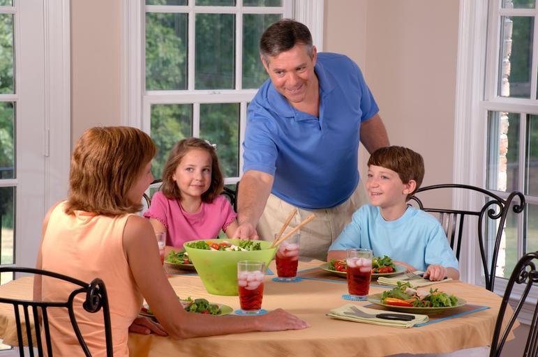 Keywords: Family eating lunch (2).jpg A Caucasian family sits for lunch The adult male serves a salad to two children male and female and an adult female Topics/Categories Food and Drink People -- Adult People -- Child People -- Family/Friends Type Color Photo Source National Cancer Institute Bill Branson Photographer 4410 2007-07-26 Reuse Restrictions None - This image is in the public domain and can be freely reused Please credit the source and/or author listed above Bill Branson Photographer PD-USGov-HHS-NIH Media from National Cancer Institute Visuals Online Images uploaded by Fæ Families eating |