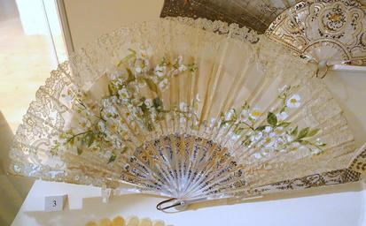 | Keywords: Fan, Burano Island, Venice, late 1800s, batiste, lace, paint, from the collection of Princess Viktoria Luise of Prussia - Braunschweigisches Landesmuseum - DSC04907.JPG en Exhibit in the Braunschweigisches Landesmuseum Braunschweig Germany This work is in the public domain because the artist died more than 70 years ago 2014-11-18 09 28 07 own Daderot other versions PD-old-70 cc-zero Fans of Viktoria Luise in the Braunschweigisches Landesmuseum | ||||