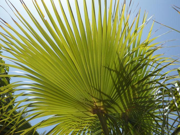 Keywords: fan palm light and shadow structure sky sun shadow play green palm leaf