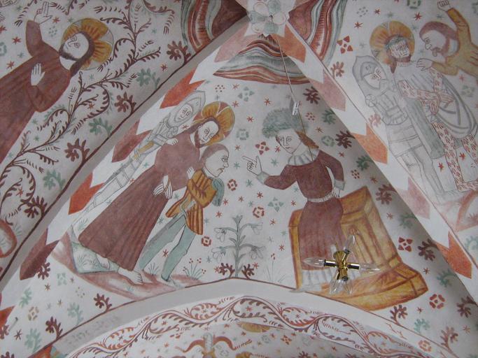 Keywords: Fanefjord Jesus high priest.JPG en Fanefjord Church Møn Denmark Fresco of Jesus before high priest own Ipigott 2009-09-09 Frescos of the Passion of Christ Møn Frescos in Fanefjord Church