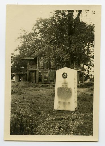Keywords: “texas” “anahuac” fannie ratchford fannieratchford outdoor Title: Thomas Jefferson Chambers’ House with historical marker in foreground Location: Anahuac, Texas Date: 1936 Title: Thomas Jefferson Chambers’ House with historical marker in foreground Location: Anahuac, Texas Date: 1936