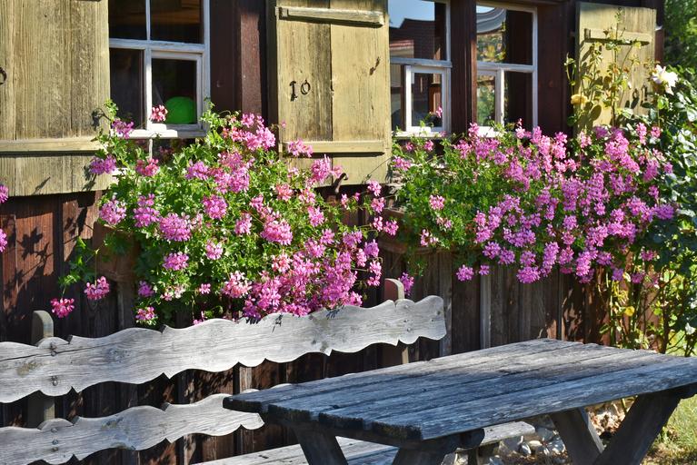 Keywords: farm floral decorations window wooden bench bank swabia museum historically old craft historic home nostalgic wood places of interest culture history old museum