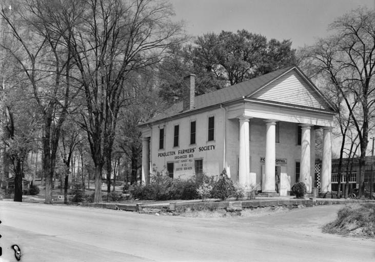 | Keywords: Farmers' Hall, Pendleton, South Carolina.jpg Farmers' Hall Pendleton South Carolina In 1940 it was a US Post Office and the home of the Pendleton Farmers' Society It was originally constructed as the court house for the Pendleton District South Carolina The District was disbanded prior to completion and completed by the Pendleton Farmers' Society In 2007 the post office is no longer there and the first floor is a restaurant Library of Congress Prints Photographs Division hhh sc0102 1940-04 Fred D Nichols SC 4-PEND 1-4 Buildings in South Carolina Pendleton Historic District Pendleton South Carolina Post offices in South Carolina |