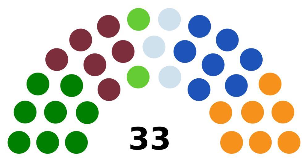 | Keywords: Faroe Islands Løgting composition 01-12-10.svg Løgting as of 1 December 2010 From left to right the parties are Republic dark green 8 seats the Social Democratic Party brown 6 the Self-Government Party light green 2 the Centre Party light blue 3 the Union Party dark blue 7 and the People's Party orange 7 own Bastin Politics of the Faroe Islands Election apportionment diagrams of the Faroe Islands Løgting | ||||