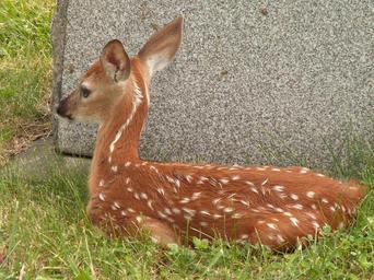 Keywords: Fawn, Odocoileus virginianus, United Cemeteries, 2015-06-08. 06.jpg en A White-Tailed Deer Odocoileus virginianus fawn resting against a monument in the Rosemont Mt Hope Evergreen United Cemeteries Ross Township Allegheny County Pennsylvania 2015-06-08 13 54 16 own Cbaile19 other versions cc-zero Odocoileus virginianus juvenile Uploaded with UploadWizard |