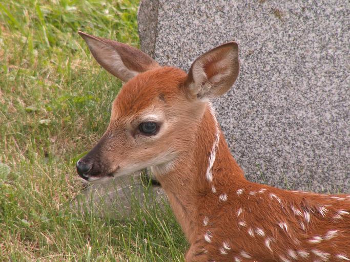 Keywords: Fawn, Odocoileus virginianus, United Cemeteries, 2015-06-08. 07.jpg en A White-Tailed Deer Odocoileus virginianus fawn resting against a monument in the Rosemont Mt Hope Evergreen United Cemeteries Ross Township Allegheny County Pennsylvania 2015-06-08 13 54 03 own Cbaile19 other versions cc-zero Odocoileus virginianus juvenile Uploaded with UploadWizard |
