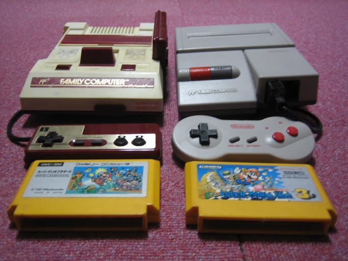 Keywords: Fc newfc.jpg A picture of an original Famicom on the left and a AV Famicom also called New Famicom on the right Below them is a cartridge of Super Mario Bros on the left and Super Mario Bros 3 on the right Y katsu 810 <span class signature-talk >talk</span> 's file 2009-6-10 Y katsu 810 <span class signature-talk >talk</span> Own work all rights released Famicom cartridges Family Computer HVC-001 Family Computer HVC-101 Mario video games |