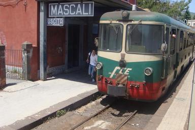 Keywords: FCE Mascali.jpg de FCE Triebwagen in Mascali own Aph 2009-05-26 FCE ALn 64 Mascali train station FCE