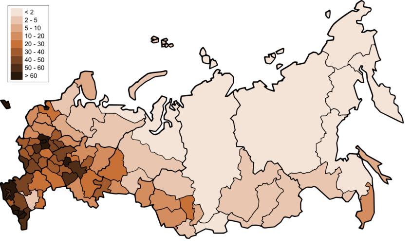 | Keywords: Federal subjects of Russia by population dencity.svg en Population density map in subjects of the Russian Federation At calculation of population density Arkhangelsk and the Tyumen region the areas and the population of autonomous regions entering into them were considered ru Ка та плотности населения в субъектах Российской Феде ации П и асчёте плотностей населения А хангельской и Тюменской области учитывались площади и населения входящих в них автономных ок угов Russia - blank map 2009-01 svg Own Original uploader was Алексей Глушков at http //ru wikipedia org/ ru wikipedia 1 02 2010 20 39 08 MSK Population maps of Russia |