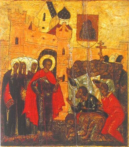 | Keywords: Fedor, David and Constantin (1560s, Yaroslavl museum) - detail 02.jpg ru «П иезд Фёдо а в Я ославль» 2-е клеймо иконы «Я ославские князья Федо Давид и Константин в житии» Я ославский исто ико-а хитекту ный и художественный музей заповедник Я ославль Россия Из це кви Чудотво цев Спасского монасты я в Я ославле ик http //www icon-art info/masterpiece php mst_id 1131 where library по асленицын С И Я ославская иконопись Искусство 1983 author 1560-е 100px PD-old-100 Icons of Spaso-Preobrazhensky Monastery Yaroslavl Icons of princes of Yaroslavl Icons in Yaroslavl Museum-Preserve Theodore Rostislavich the Black |