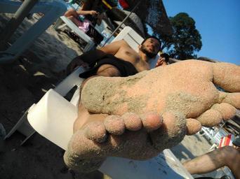 Keywords: feet sandy sand toes relax rest sun bathing man beach
