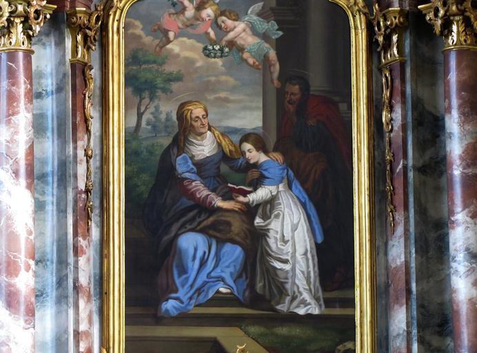 Keywords: Fegersheim-St Maurice063.JPG fr Alsace Bas-Rhin Fegersheim Église Saint-Maurice Tableau Sainte Parenté de l'autel secondaire sud 1780-1847 2012 own Ralph Hammann cc-by-sa-3 0 Artwork / Œuvre d'art / Kunstwerk oil canvas cm 240 125 Eglise Saint-Maurice Fegersheim Autel secondaire nord Vierge à l'enfant IM67000152 object history Tableaux d'autel signés par Joseph-Maximilian Seelenmayer et datés de 1847 other versions Ralph Hammann PD-old accession number Autel de la Sainte Parenté Fegersheim Photographs of Fegersheim by Ralph Hammann Taken with Canon PowerShot SX20 IS Objets monuments historiques in Bas-Rhin church paintings Neoclassical church paintings in Alsace 19th-century church paintings in Alsace Paintings of Education of Virgin Mary Paintings of Saint Anne 1847 oil on canvas paintings in France 1847 works in Alsace Paintings of putti in France 19th-century paintings of putti |