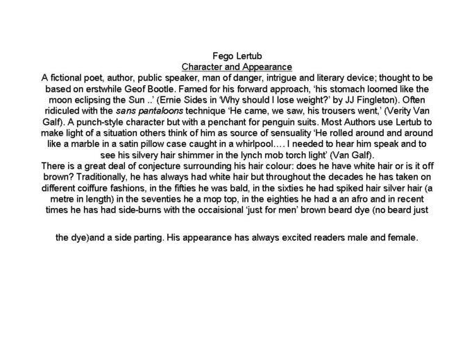 Keywords: Fego Lertub.jpg en Fictional character or literary device own Gladwin Smalls 12/10/2008 None needed Literature