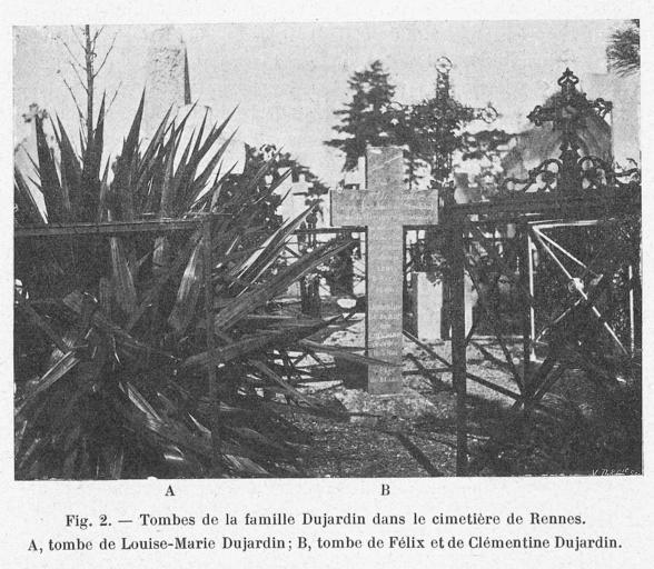 | Keywords: Félix Dujardin - Tombe (1901).png en Félix Dujardin - his grave in Rennes France Photographed in 1901 1901 Archives de Parasitologie Volume 4 1901 Louis Joubin other versions Félix Dujardin 1811-1860 by Louis Joubin 1901 Archives de Parasitologie Vol 4 pdf PD-old-70-1923 Félix Dujardin Uploaded with UploadWizard Cemeteries in Rennes Black and white panoramic photographs Graves in Ille-et-Vilaine Cemetery crosses in Ille-et-Vilaine 1901 photographs 1901 in Bretagne Rennes in the 1900s | ||||