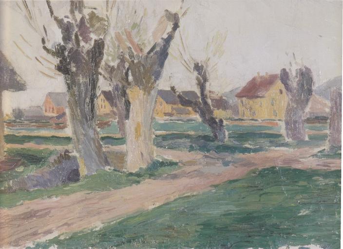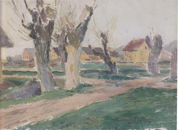 Keywords: Felix Esterl - Landschaft mit Weiden und Häusern - ca1925.jpeg Artwork title Landschaft mit Weiden und Häusern Landscape with willow-trees and houses Oil on canvas 49 x 68 cm private collection repro from art book 1925 Creator Felix Esterl PD-old Other versions Felix Esterl Pollard willows in art |
