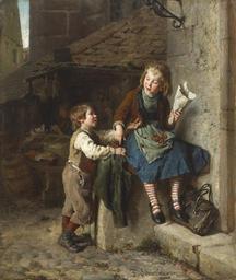 Keywords: Felix Schlesinger - Ein Leckerbissen.jpg oil panel cm 38 7 32 4 accession number object history credit line 'F Schlesinger' ~ lower right signature http //www bonhams com/auctions/14650/lot/86/ Bonhams PD-old-auto-1923 1910 Felix Schlesinger Paintings of children Images from Bonhams |
