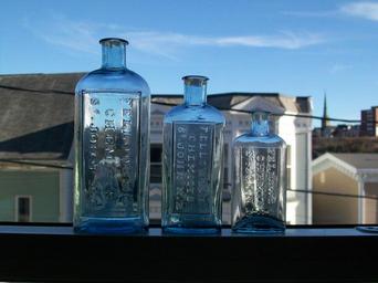 Keywords: saint john saintjohn new brunswick newbrunswick bottle druggist medicinal st john stjohn drugstore outdoor 6 oz. , 4 oz. ,2oz. flared lipped Fellows & Co. bottles. Deep aqua blue, almost sapphire blue. Y. G. Co. in a crown on base on 4 & 6 oz. bottles. Circa 1865-1870.The Daily Telegraph, April 16 1880 "James I. FELLOWS who has been long identified with the business of Saint John will leave this morn. by the I.C.R. for Halifax, from which he will embark for Europe where he will spend the next two or three years. Mr. Fellow, a native of Bridgetown, N.S., has lived mainly in Saint John since 1837. He commenced the druggist business in partnership with his father in 1847 on King St., but was burnt out the following year, losing an amount equal to the capital with which he had started. On the following day he opened again on Foster's Corner and in 1853 erected the fine stone building on Germain St. to which he removed the following year. He reopened at Foster's Corner in 1863 and continued in business until 1876 when he established a business place in Montreal and another in New York. He now proposed to make London his headquarters. He imported and improved some of the best Jersey cattle. He personally discovered the manganese mine at Upham (Kings Co.) now worked by Mr. MARKHAM. He was the first to start the enterprise of red granite at St. George (Charlotte Co)" 6 oz. , 4 oz. ,2oz. flared lipped Fellows & Co. bottles. Deep aqua blue, almost sapphire blue. Y. G. Co. in a crown on base on 4 & 6 oz. bottles. Circa 1865-1870.The Daily Telegraph, April 16 1880 "James I. FELLOWS who has been long identified with the business of Saint John will leave this morn. by the I.C.R. for Halifax, from which he will embark for Europe where he will spend the next two or three years. Mr. Fellow, a native of Bridgetown, N.S., has lived mainly in Saint John since 1837. He commenced the druggist business in partnership with his father in 1847 on King St., but was burnt out the following year, losing an amount equal to the capital with which he had started. On the following day he opened again on Foster's Corner and in 1853 erected the fine stone building on Germain St. to which he removed the following year. He reopened at Foster's Corner in 1863 and continued in business until 1876 when he established a business place in Montreal and another in New York. He now proposed to make London his headquarters. He imported and improved some of the best Jersey cattle. He personally discovered the manganese mine at Upham (Kings Co.) now worked by Mr. MARKHAM. He was the first to start the enterprise of red granite at St. George (Charlotte Co)" |