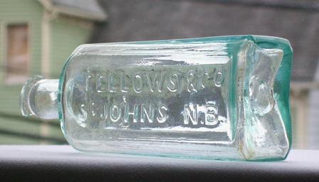 Keywords: saint john saintjohn bottle new brunswick newbrunswick st john stjohn drugstore pontil druggist depth of field bokeh food beverage text writing surreal pastel 5 1/8" tall aqua, pontiled Fellows. Flared lip is very damaged. Very rare and desirable bottle. New Brunswick Courier, September 20 1851 . "m. All Saints Church, Loch Lomond (St. John) 15th inst., by Rev. J.W. Disbrow, James J. FELLOWS, St. John city, Druggist / Elizabeth R. ALLAN eldest d/o Thomas ALLAN, Esq., St. Paul's District, Portland. " 5 1/8" tall aqua, pontiled Fellows. Flared lip is very damaged. Very rare and desirable bottle. New Brunswick Courier, September 20 1851 . "m. All Saints Church, Loch Lomond (St. John) 15th inst., by Rev. J.W. Disbrow, James J. FELLOWS, St. John city, Druggist / Elizabeth R. ALLAN eldest d/o Thomas ALLAN, Esq., St. Paul's District, Portland. " |