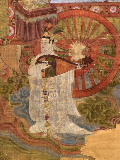| Keywords: Female figure as Venus, T'ang dynasty.jpg en Female figure as the planet Venus from the painting Tejaprabhā Buddha and the Five Planets 熾盛光佛並五星 depicted as a beautiful lady playing the pipa 琵琶 Her skin tone is snow white Incidentally it was part of the female aesthetic which was transferred to Japan and emulated by the Geishas She has a bird ornament atop her head 897 A D British Museum - http //www britishmuseum org/research/collection_online/collection_object_details aspx objectId 6579 partId 1 Chang Huai-hsing 張淮興 other versions PD-old-100 Buddhist paintings from China Buddhist paintings of the Tang Dynasty Paintings in the British Museum |