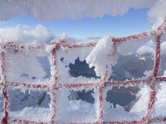 Keywords: fence grid frost snow cold snow crystals winter icy