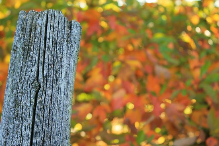 Keywords: fence post weathered worn split autumn color wooden colorful fall poles seasonal countryside fence rural texture knot