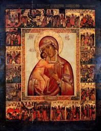 | Keywords: Feodorovskaya with miracles 1680s.jpeg Феодо овская икона Божией ате и со сказанием о чудесах 1680-е гг Список с п ославленной святыни го ода Кост омы Богомате и Фёдо овской 1239 года Кост омской музей-заповедник http //www cirota ru/forum/view php subj 53563 order pg 50 s 1680 Author PD-Art Feodorovskaya with miracles Feodorovskaya with miracles 1680s |