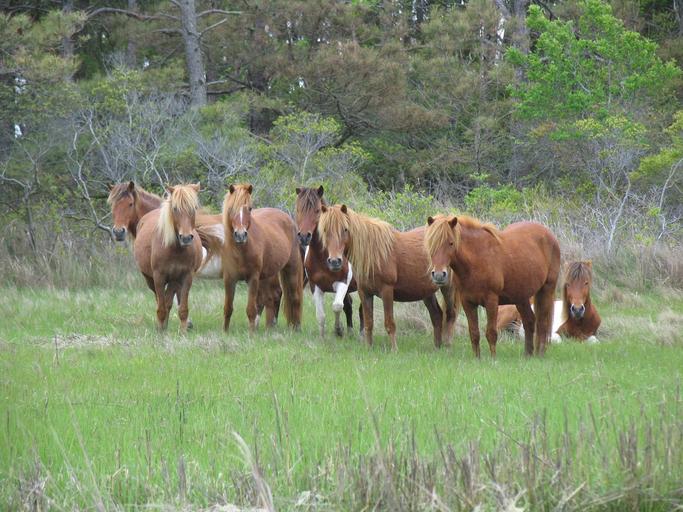 Keywords: feral horses wild grazing panorama landscape range herd wildlife animals countryside meadow assateague island virginia usa wilderness portrait