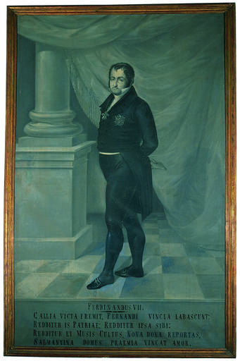 Keywords: Fernando VII. Isidoro Celaya.tif Retrato del rey Fernando VII de España 1784-1833 que fue hijo del rey Carlos IV de España y de la reina María Luisa de Parma 1858 1861 oil on canvas Size cm 146 243 Institution University of Salamanca http //diarium usal es/wiki/files/2013/11/LOCI-ET-IMAGINES-con-portada pdf accession number Loci et imagines / Imágenes y lugares - 800 años de patrimonio de la Universidad de Salamanca PD-old-100 cc-by-sa-3 0 40 961436 -5 667977 Portrait paintings of Ferdinand VII of Spain Galería de retratos de reyes y reinas de España Universidad de Salamanca Loci et imagines