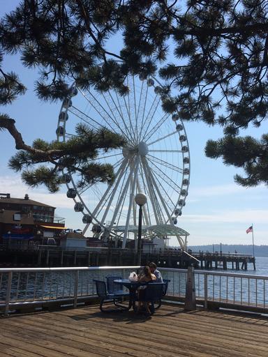 Keywords: ferris wheel people seattle vacation summer ferris happy tourism couple love sky friendship outdoors park wheel travel