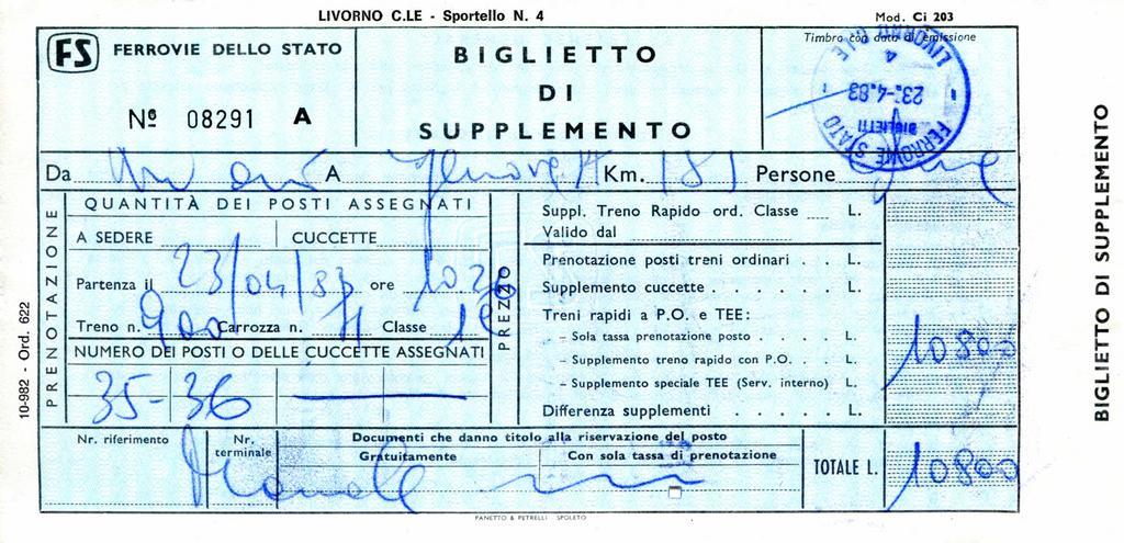 Keywords: Ferrovie dello Stato train ticket extra charge 08291.jpg en ITA Ferrovie dello Stato Italiane hand writing supplementary Train ticket issued on April 25 1983 Own work from scan Piergiuliano Chesi 1983-04-25 trademarked Rail tickets of Italy |
