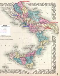 Keywords: Ferrovie due sicilie 1860.png Situazione della rete ferroviara del Regno delle Due Sicilie al 1860 sono indicate le linee funzionanti in nero e quelle progettate in rosso e in costruzione a partire dal 1855 in blu su mappa J H Colton Co New York 1855 Fonte Francesco Ogliari Storia dei trasporti italiani volume 21° Terra di primati Cavallotti Editore Milano 1975 it wikipedia 2012-03-31 Bacefik wikipedia it Bacefik Original upload log it wikipedia Ferrovie_due_sicilie_1860 png wikitable - 2012-03-31 10 13 2288×2868× 13020918 bytes Bacefik <nowiki>Situazione della rete ferroviara del Regno delle Due Sicilie al 1860 sono indicate le linee funzionanti e quelle progettate e costruite a partire dal 1855 su mappa J H Colton Co New York 1855 Fonte Francesco Ogliari Storia dei trasporti itali </nowiki> Rail_transport_in_Italy_in_the_1850s Rail_transport_in_Italy_in_the_1860s Kingdom_of_the_Two_Sicilies |