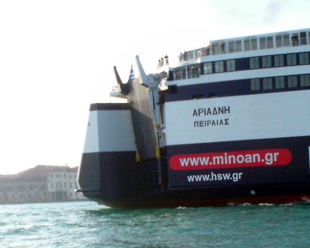 Keywords: Ferry-arcadia-ramp-venice.jpg Ramp of Ferry Ariadne of Hellenic Seaways/Minoans Lines in Venice IMO Number 9135262 MMSI Number 240580000 Callsign SVST Length 196 m Beam 27 m Rampa del Ferry Ariadne di Hellenic Seaways/Minoans Lines in transito nel canale della Giudecca Venezia Italia Own 2008-03 Enri82ve Ships in Canale della Giudecca Venice Hellenic Seaways Ariadne ship 1996