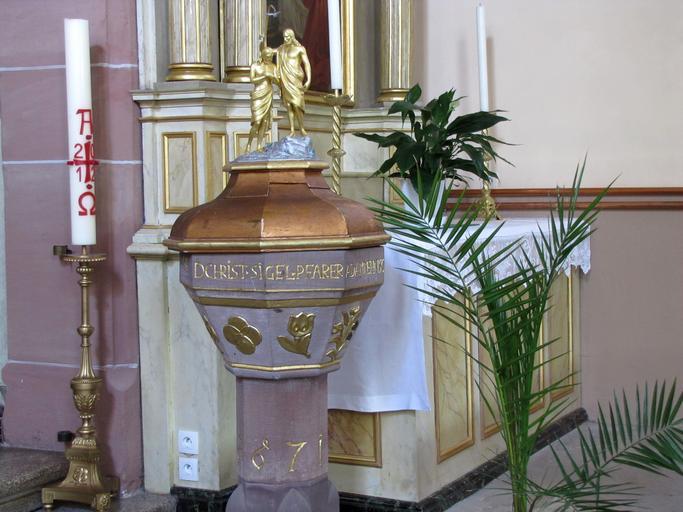Keywords: FessenheimBas StMartin 27.JPG Alsace Bas-Rhin Fessenheim-le-Bas Eglise St Martin Fonts baptismaux 1671 own 2012 Ralph Hammann IM67009486 Cc-zero Interior of Église Saint-Martin de Fessenheim-le-Bas Photographs of Fessenheim-le-Bas by Ralph Hammann Taken with Canon PowerShot SX20 IS Baptismal fonts in Bas-Rhin Stone baptismal fonts in Alsace Stone carving in Bas-Rhin Statues of the baptism of Jesus Christ in France 1671 works in Alsace 17th-century baptismal fonts in Alsace |