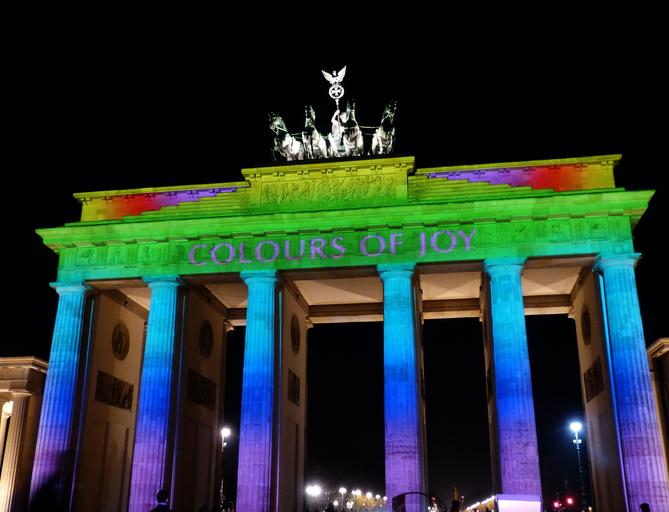 Keywords: festival of lights brandenburg gate berlin capital germany landmark building historically architecture evening night dark darkness festival lighting goal pillar