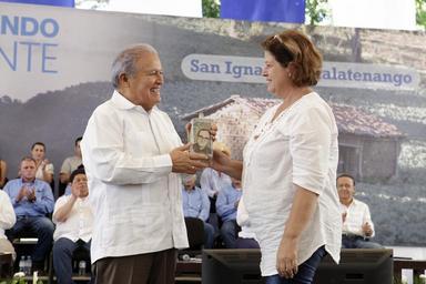 Keywords: outdoor Presidente Salvador Sánchez Céren en San Ignacio , recibe obsequio de la delegación de Cuba Presidente Salvador Sánchez Céren en San Ignacio , recibe obsequio de la delegación de Cuba